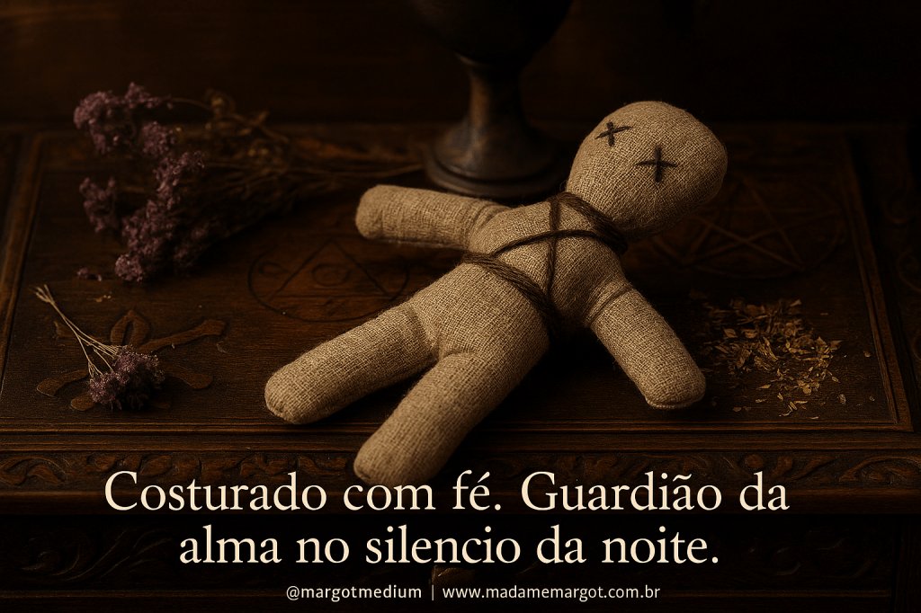 Considerados aliados espirituais, os poppets de proteção exigiam cuidado e respeito. Muitos deles eram “alimentados” com orações, defumações ou oferendas, funcionando como guardiões ativos e silenciosos contra a magia negativa, o olhar invejoso e os desequilíbrios emocionais.